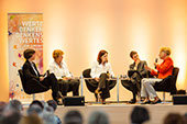 Prof. Dr. Gesine Schwan und Podium u.a.m. Dr. Birgit Barden,